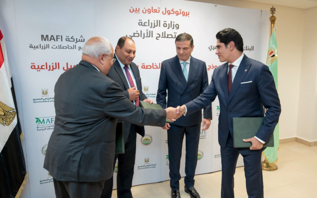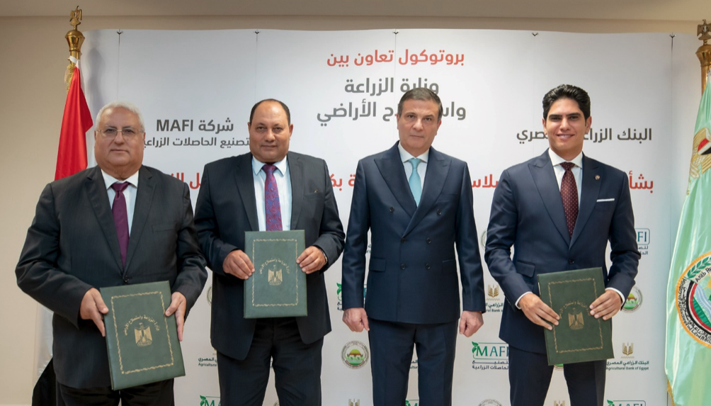 The signing ceremony was attended by Eng. Mostafa El-Sayed, Deputy Minister of Agriculture and Land Reclamation, Sami Abdel Sadeq, Acting Chairman of the Egyptian Agricultural Bank, and Ahmed Abou Hashima, Chairman of MAFI for Agricultural Produce Industries, alongside senior representatives from the ministry, the bank, and MAFI.